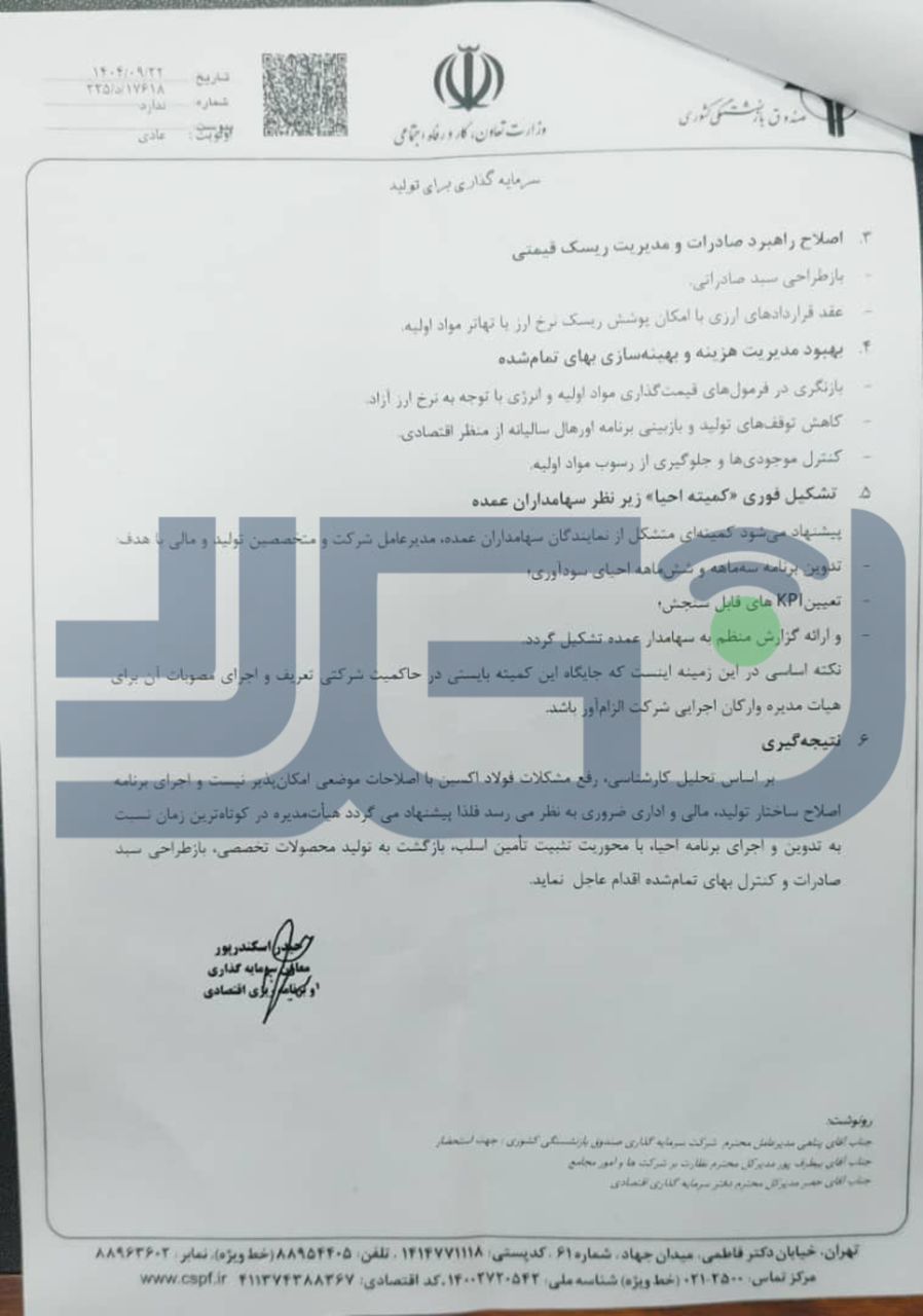 بیسابقهترین بخش این اسناد، پیشنهاد تشکیل کمیته احیا است. در عرف صنعتی، تشکیل چنین کمیتهای با حضور نمایندگان سهامداران و تدوین برنامه نجات ۳ و ۶ ماهه (Turnaround Plan)، به معنای سلب صلاحیت عملیاتی از مدیرعامل فعلی است.